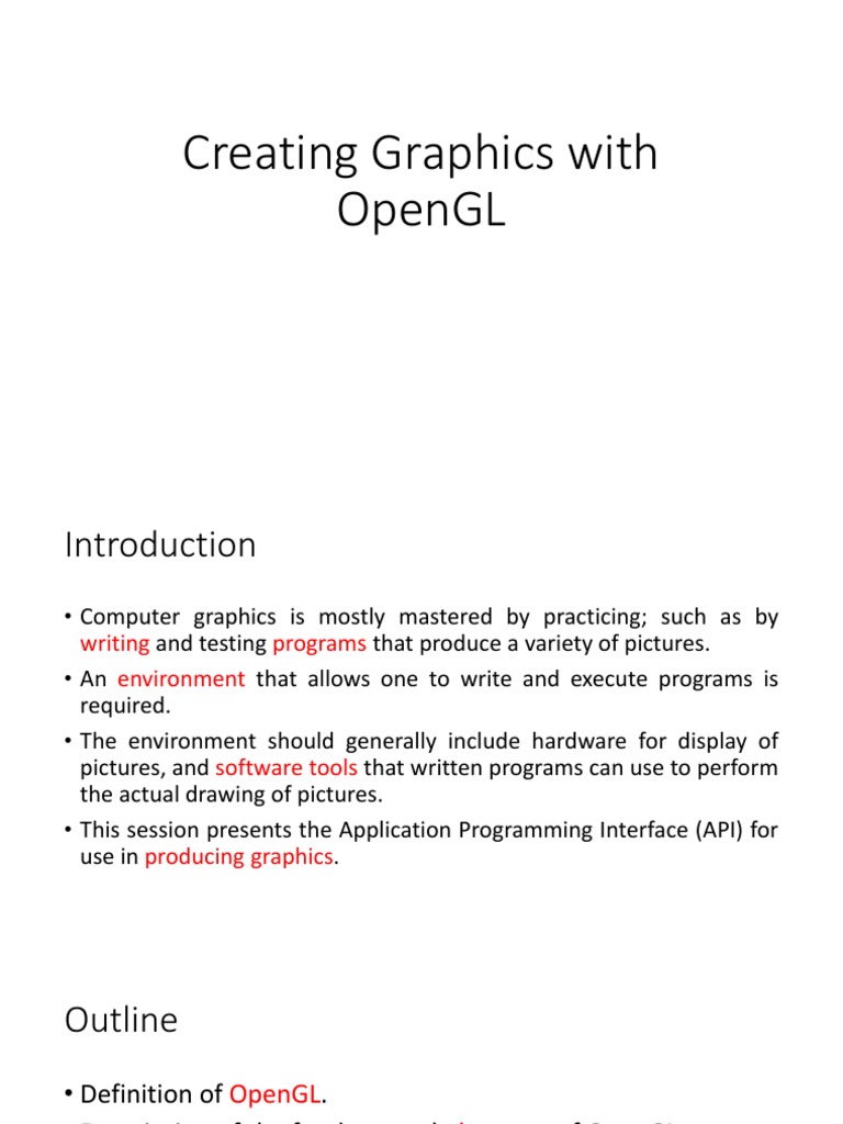 • So far, from the definition and fundamentals of OpenGL as an API for