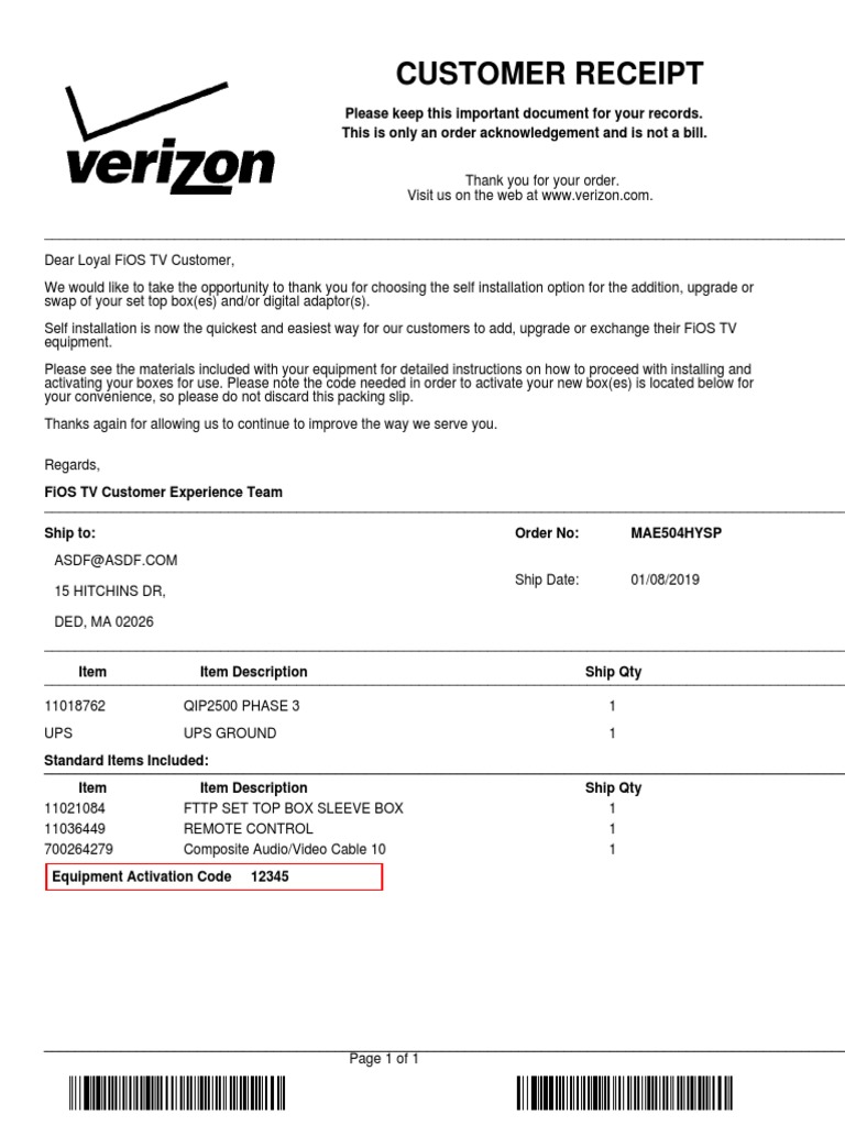 activating your boxes for use. Please note the code needed in order to activate your new box(es) is located below for
