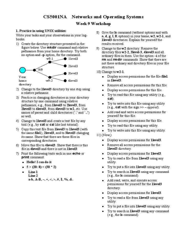 figure below. Use mkdir command and relative 9) Change to the w2 directory. Remove the