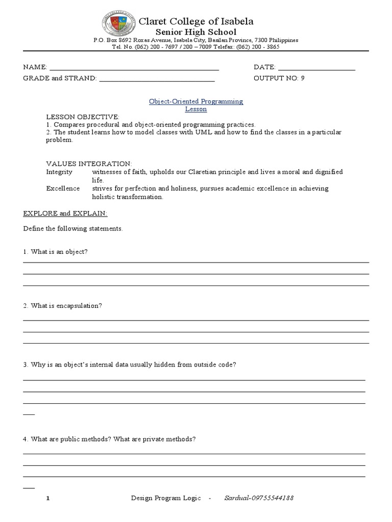 GRADE and STRAND: ______________________________ OUTPUT NO: 9