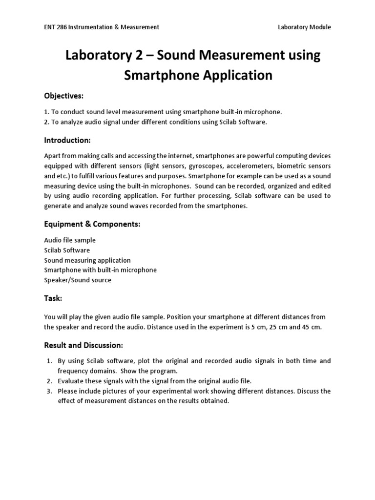 1. To conduct sound level measurement using smartphone built-in microphone.