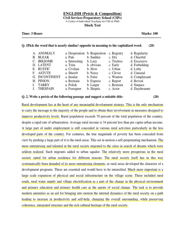 Q. 2. Write a précis of the following passage and suggest a suitable title: (20)
