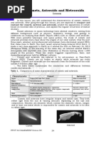 1. describe the characteristics of comets, asteroids, and meteors;