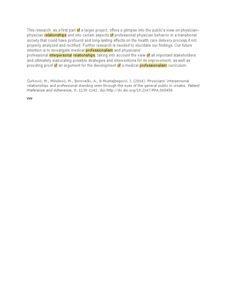 relationships and professional standing seen through the eyes of the general public in croatia. Patient