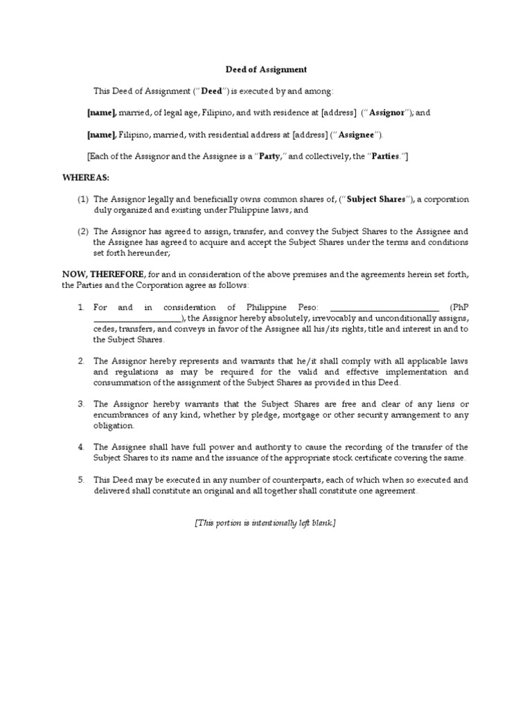 Deed of Assignment