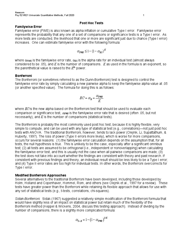 occurs for several reasons: (1) the familywise error calculation depends on the assumption that, for all
