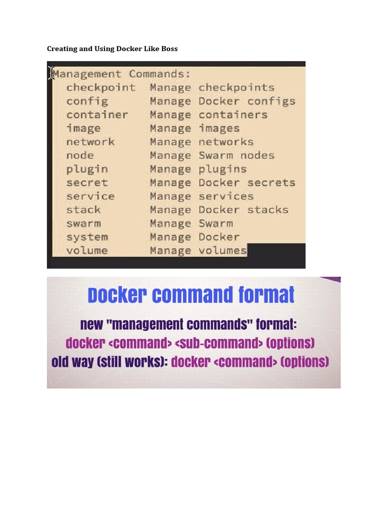 We played around with the ls and the inspect commands, created a Docker network, and used the