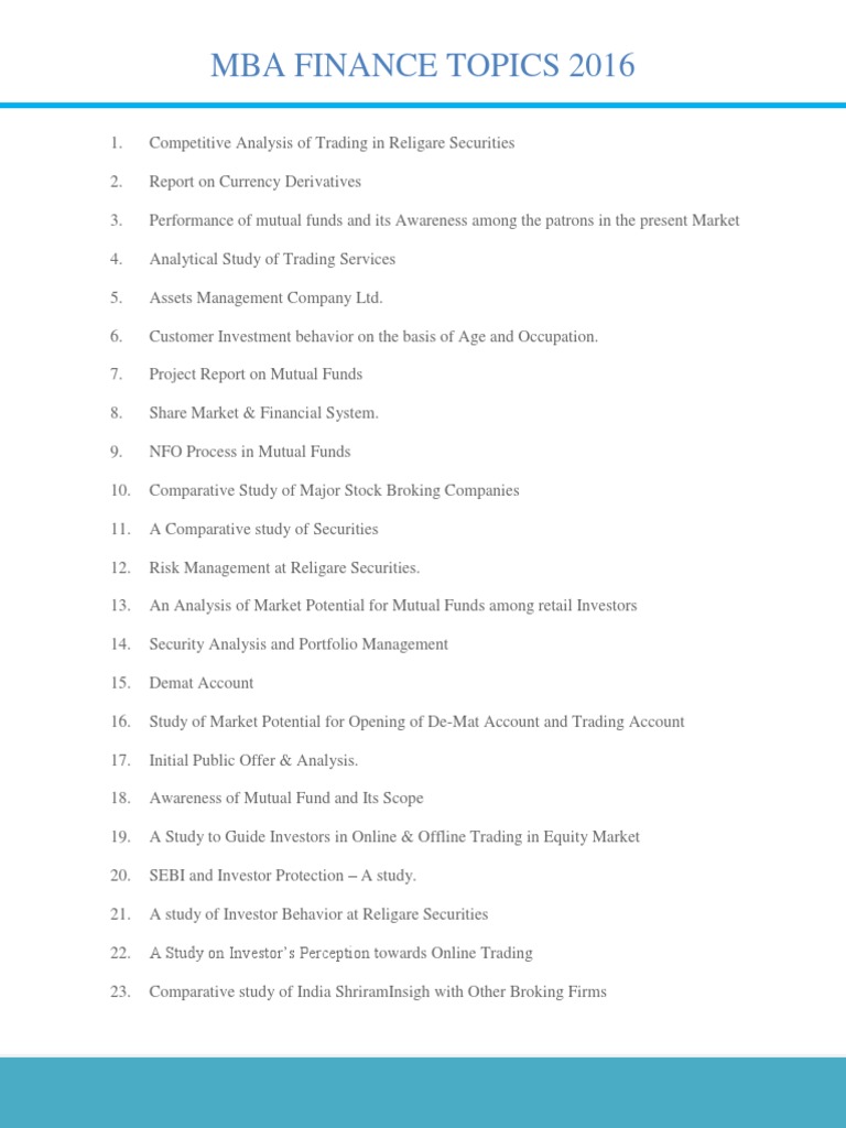 MBA FINANCE TOPICS 2016