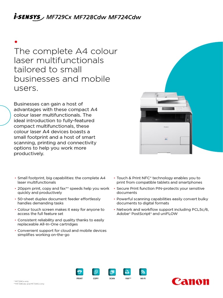 Printer languages UFRII-LT, PCL5c/6, Adobe PostScript Double sided faxing Yes (Transmit and Receive)