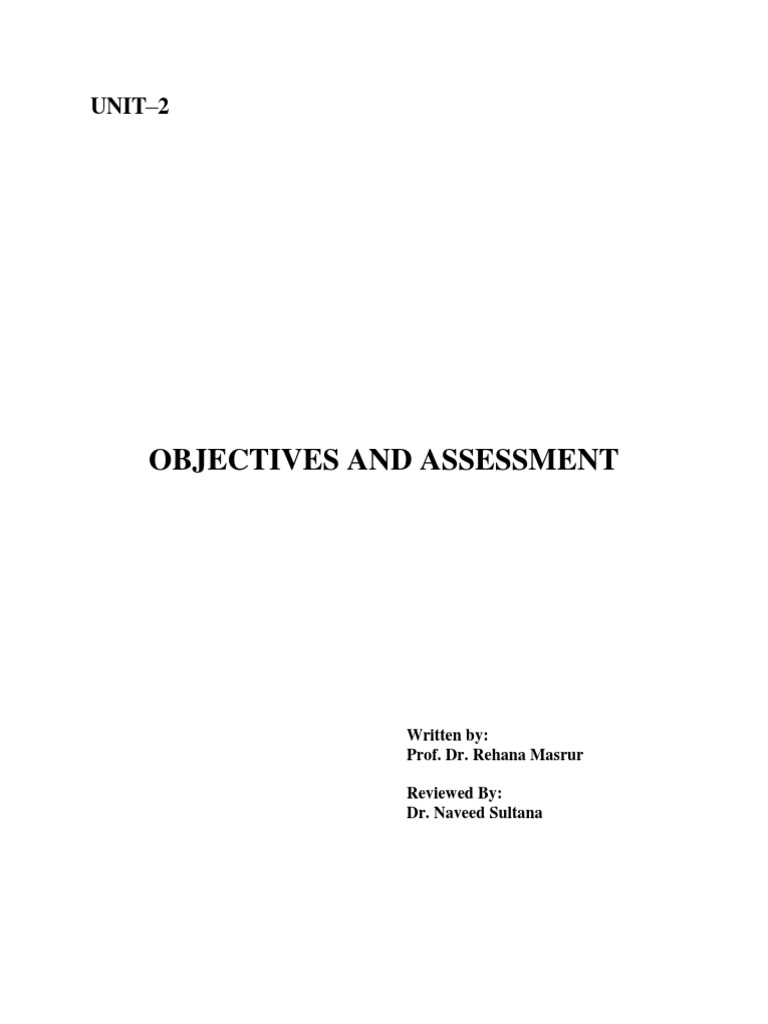 objectives. One must consider objectives of the unit before selection of content domain and subsequently
