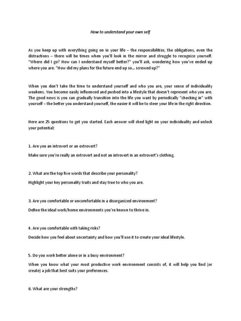 These questions can inspire you to reflect on yourself. Check in with yourself often and you will be
