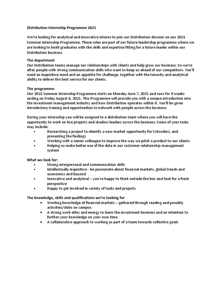 Summer Internship Programme. These roles are part of our future leadership programme where we