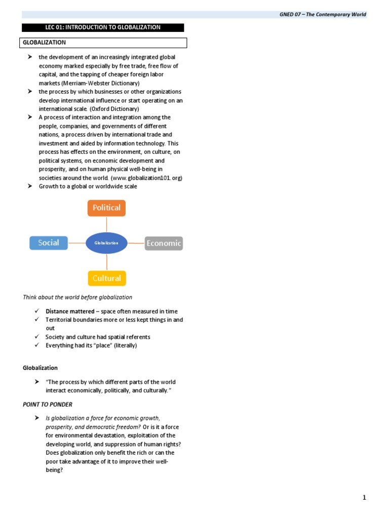 ➢ [e]conomic globalization is a historical process, the Social System: consists of cultural, political and