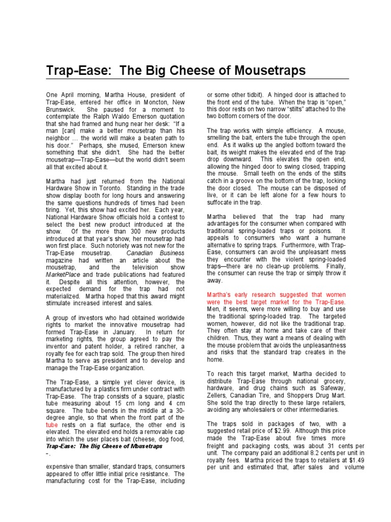 1. Has Martha identified the best target market for Trap-Ease? What other market segments might the firm