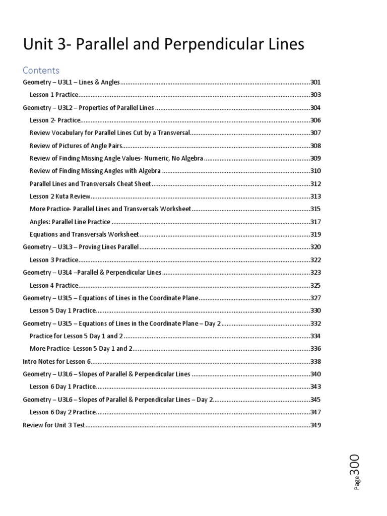 Geometry – U3L2 – Properties of Parallel Lines .........................................................................................304