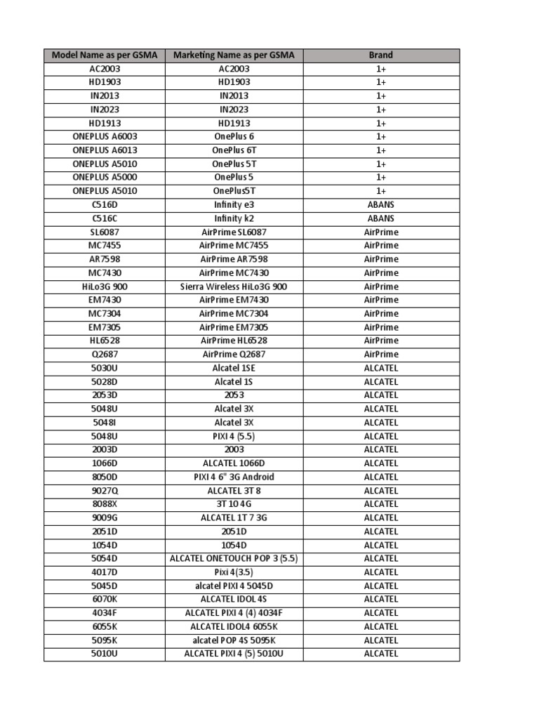 5036X, 5036D,5037X ALCATEL ONE TOUCH POP C5 ALCATEL