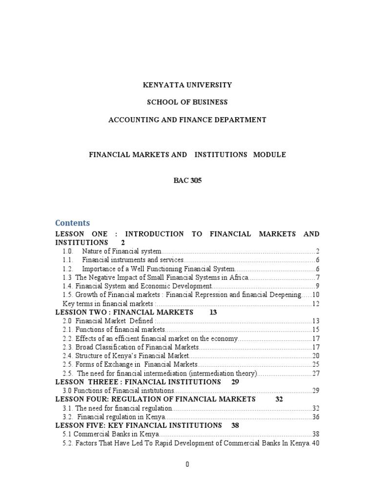 LESSON ONE : INTRODUCTION TO FINANCIAL MARKETS AND