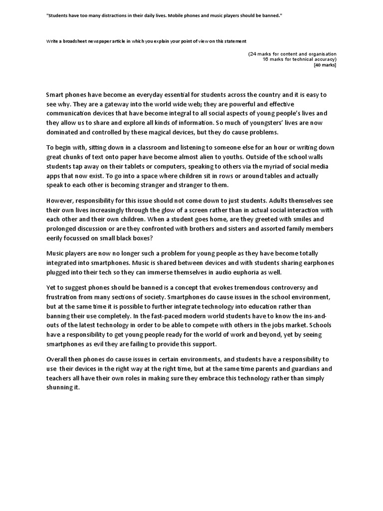 "Students have too many distractions in their daily lives. Mobile phones and music players should be banned.