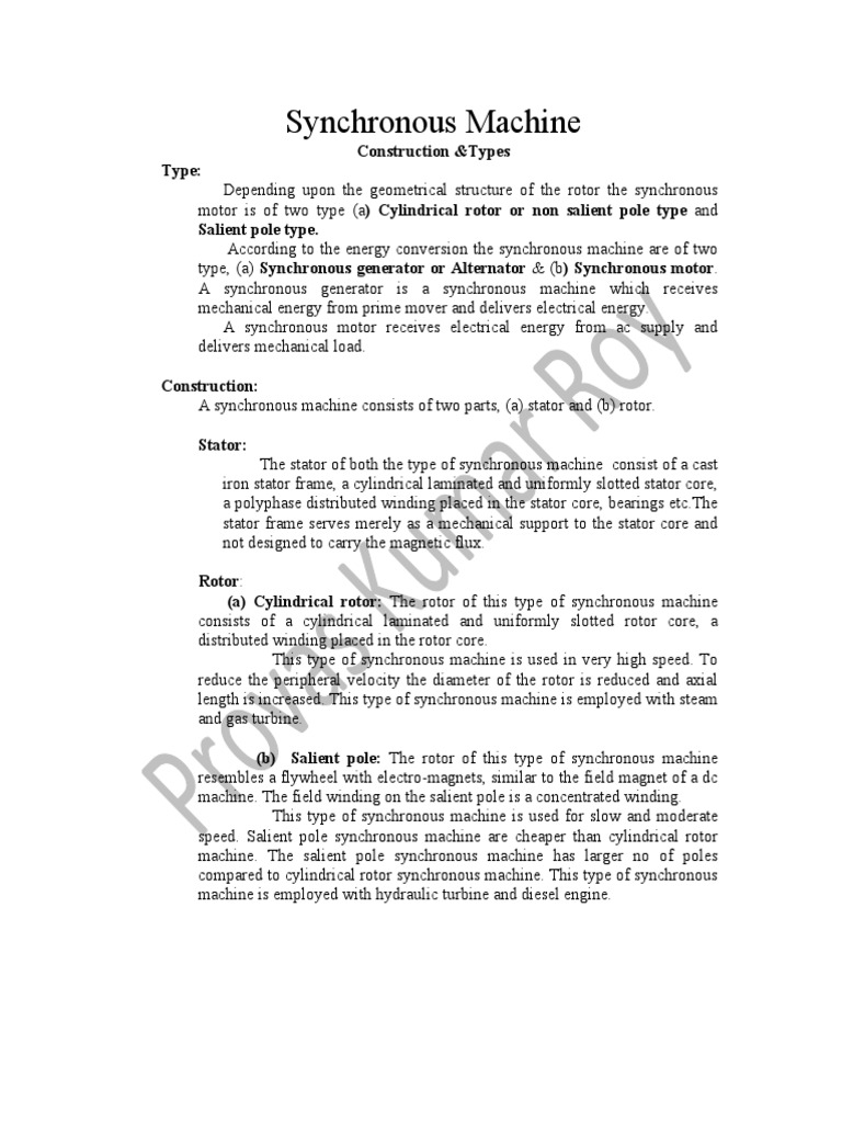 compared to cylindrical rotor synchronous machine. This type of synchronous