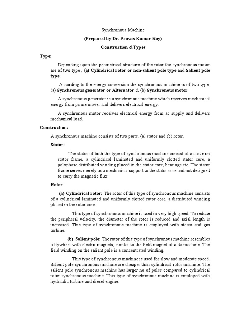 (a) Synchronous generator or Alternator & (b) Synchronous motor.