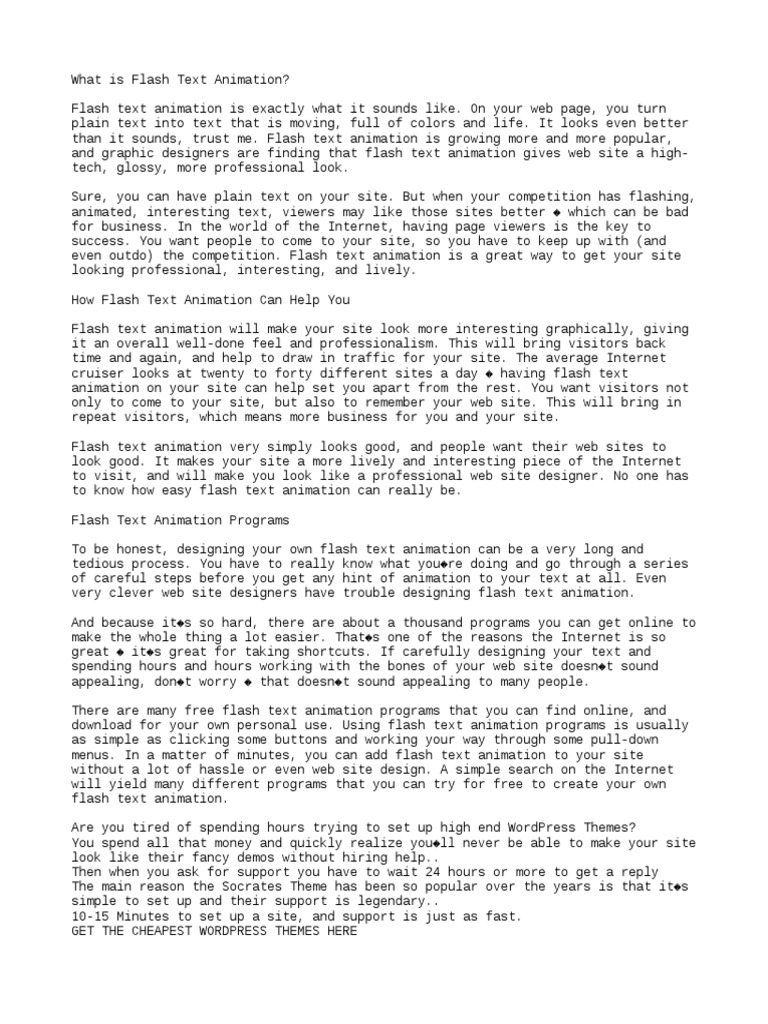 to your site, there�s no reason not to give it a try. Flash text animation will