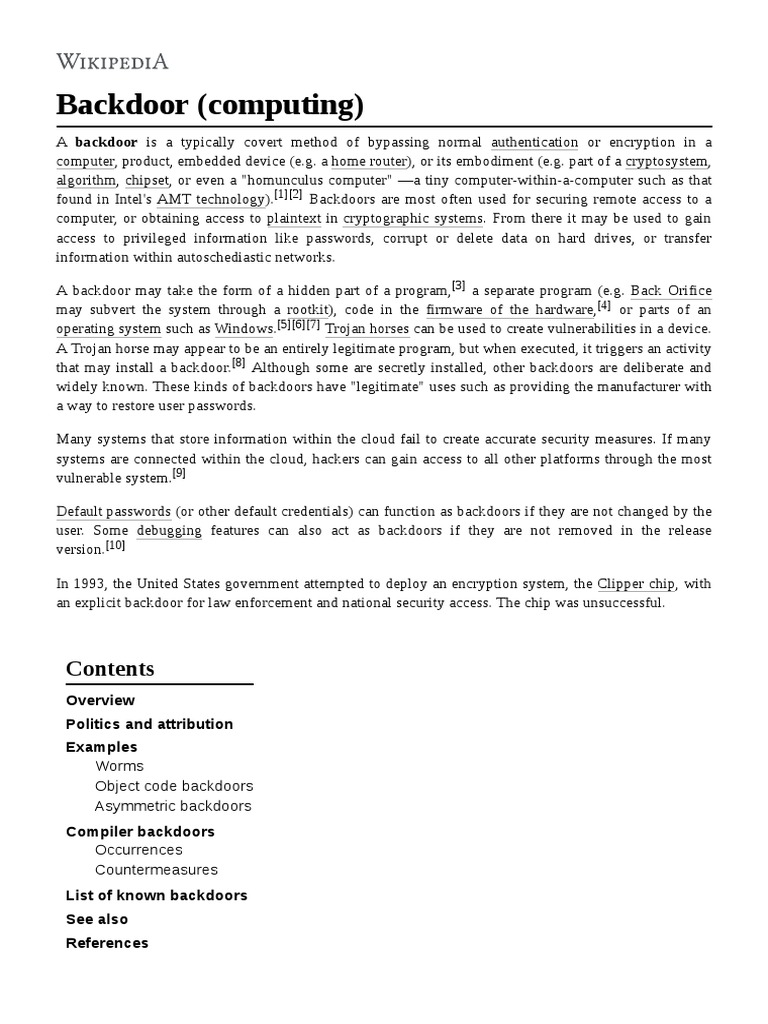 found in Intel's AMT technology).[1][2] Backdoors are most often used for securing remote access to a