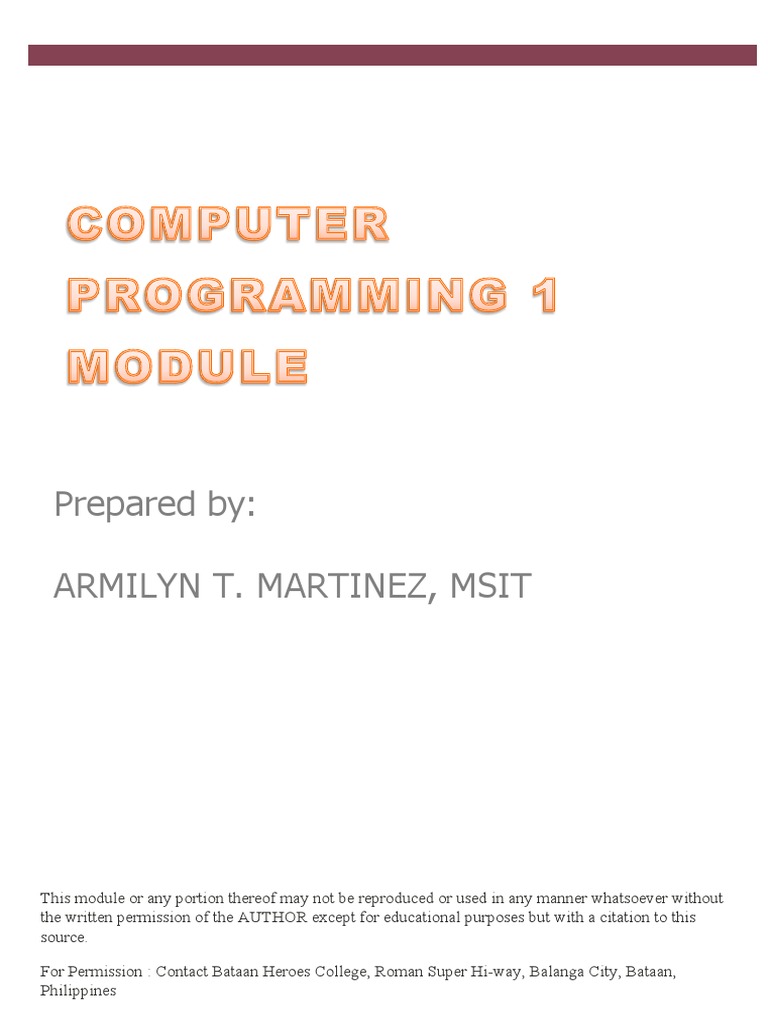 [COMPUTER PROGRAMMING 1 MODULE] 3