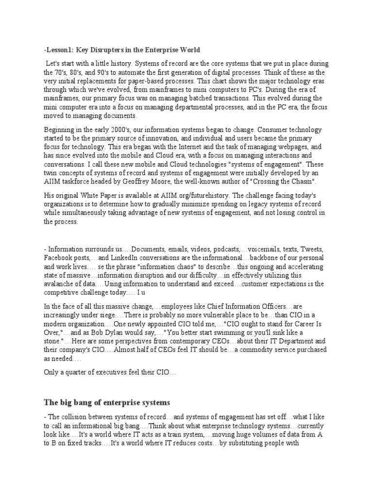 to call an informational big bang.…Think about what enterprise technology systems…currently