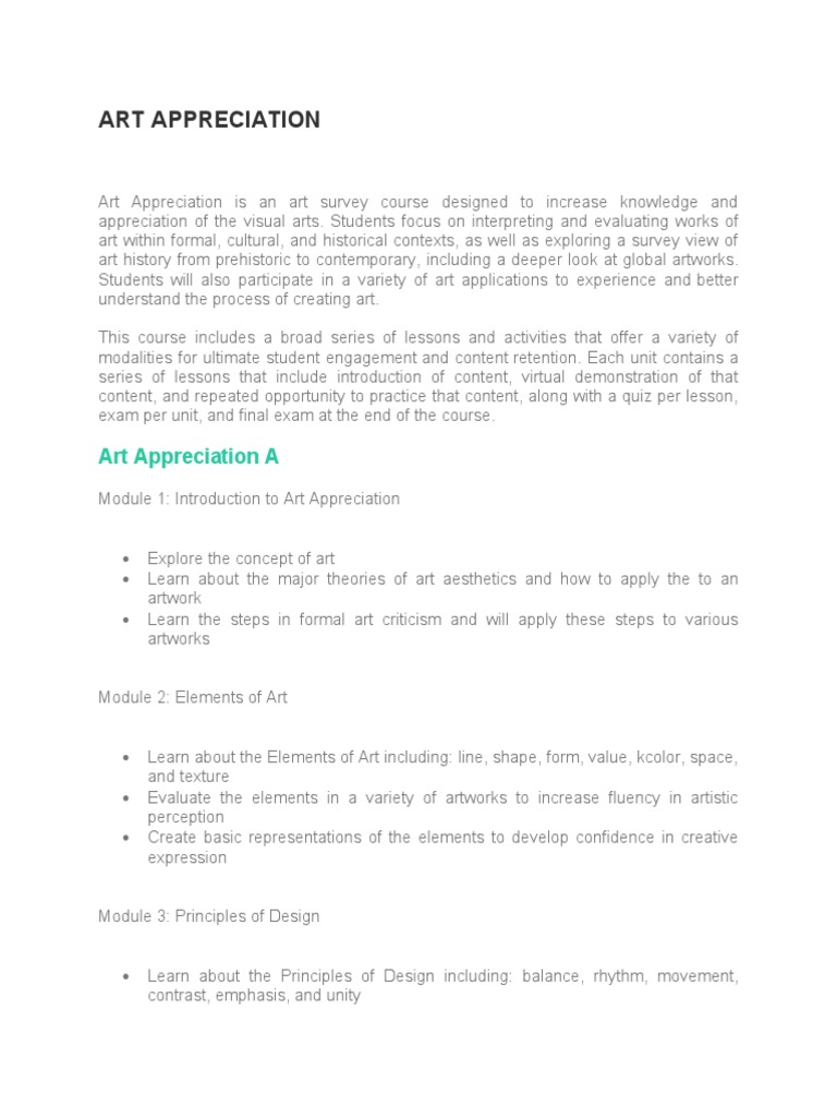 art within formal, cultural, and historical contexts, as well as exploring a survey view of