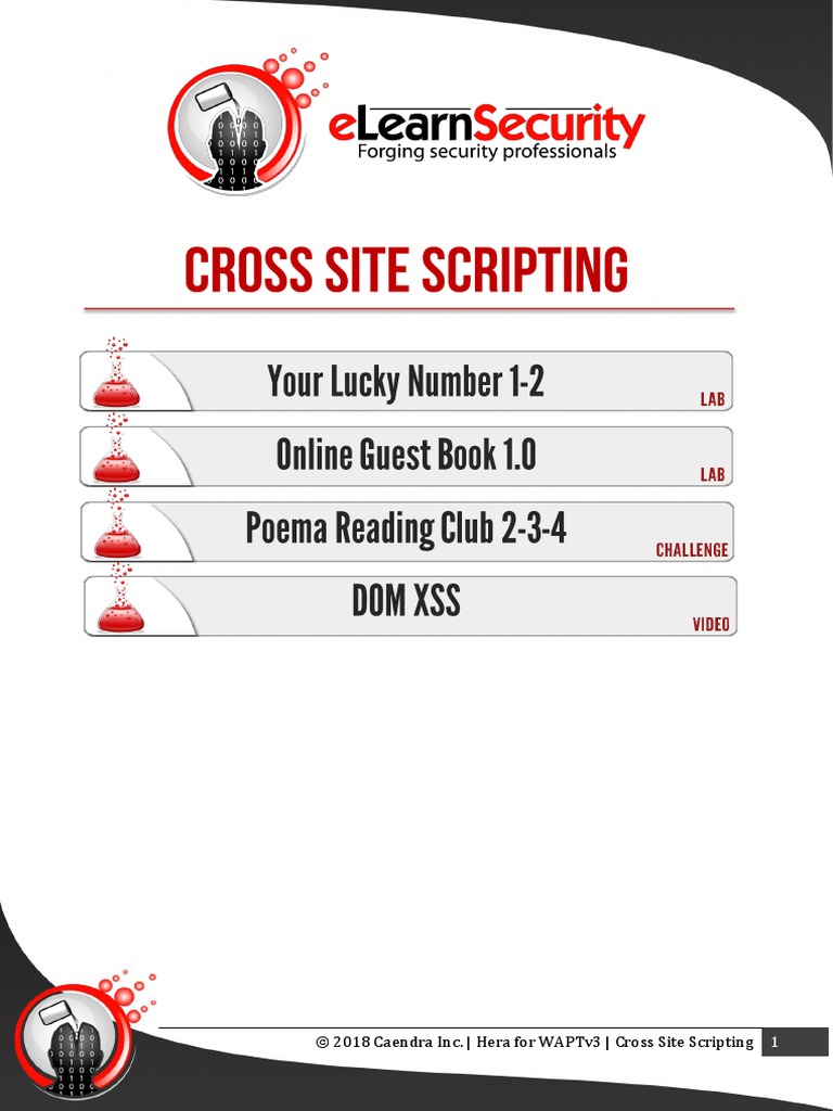 In these XSS labs, the student can practice attacks techniques to discover and exploit Cross