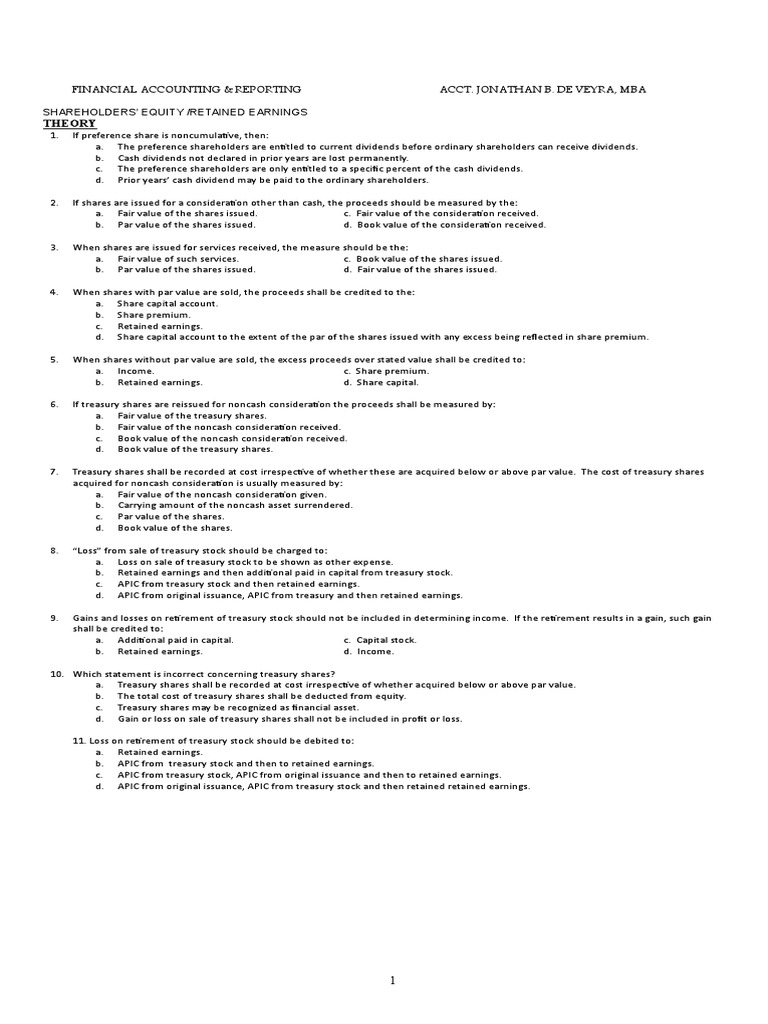29. Assuming the issuing company has only one class of stock, a transfer from retained earnings to capital stock equal to the market