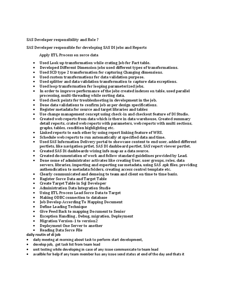 SAS Developer responsible for developing SAS DI jobs and Reports