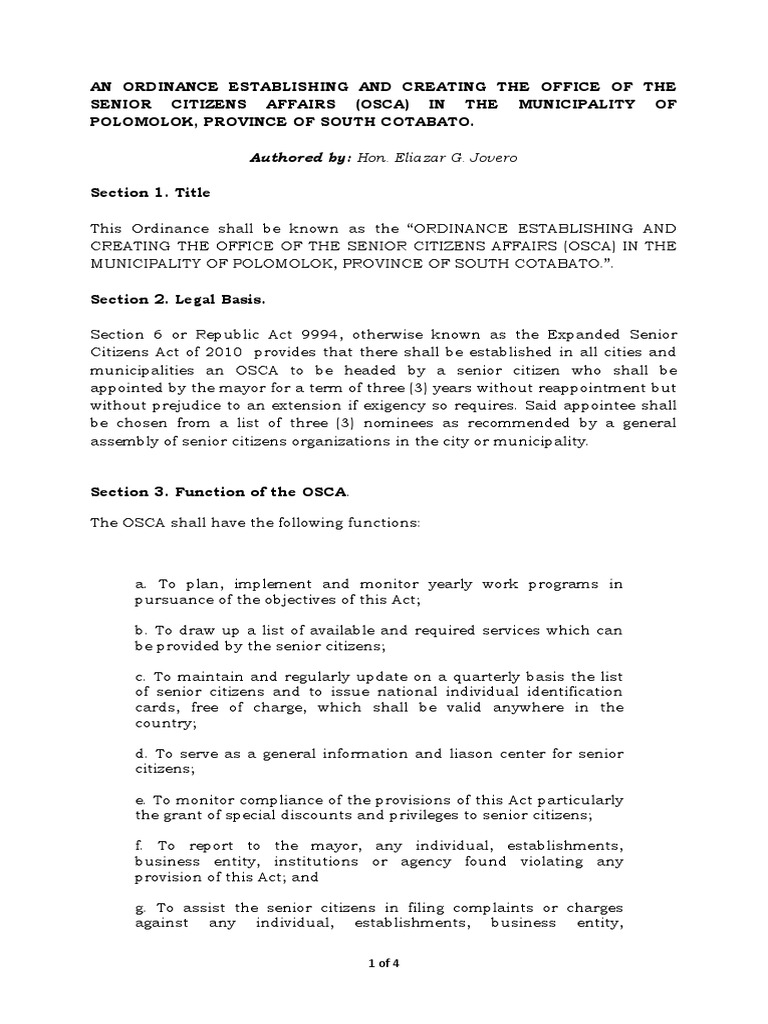 SENIOR CITIZENS AFFAIRS (OSCA) IN THE MUNICIPALITY OF
