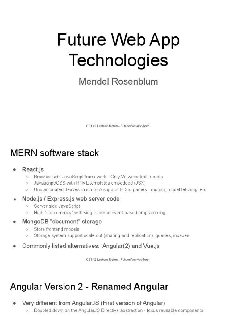 CS142 Lecture Notes - FutureWebAppTech