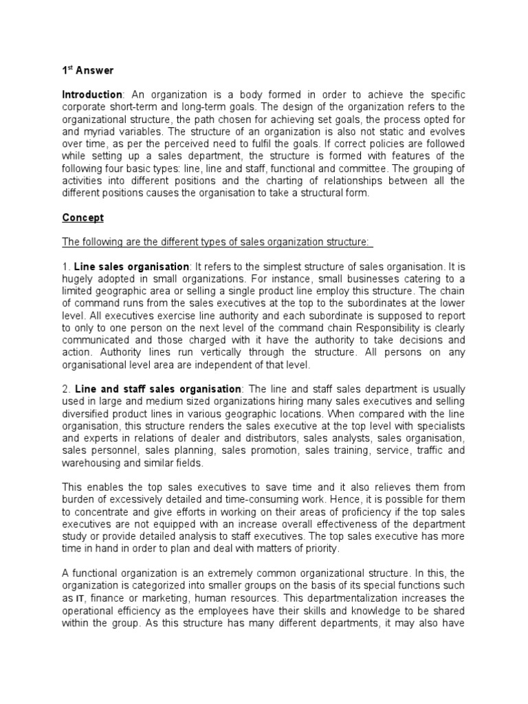 1. Line sales organisation: It refers to the simplest structure of sales organisation. It is