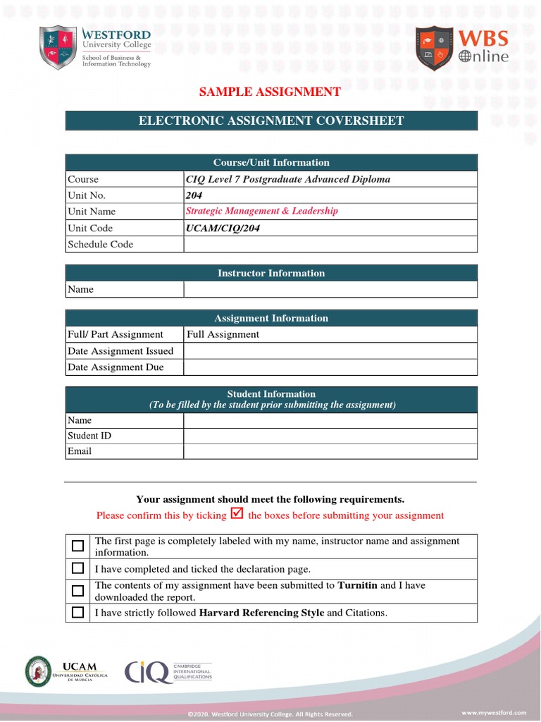 The following grading criteria will be applicable for the course, CIQ Level 7 Postgraduate