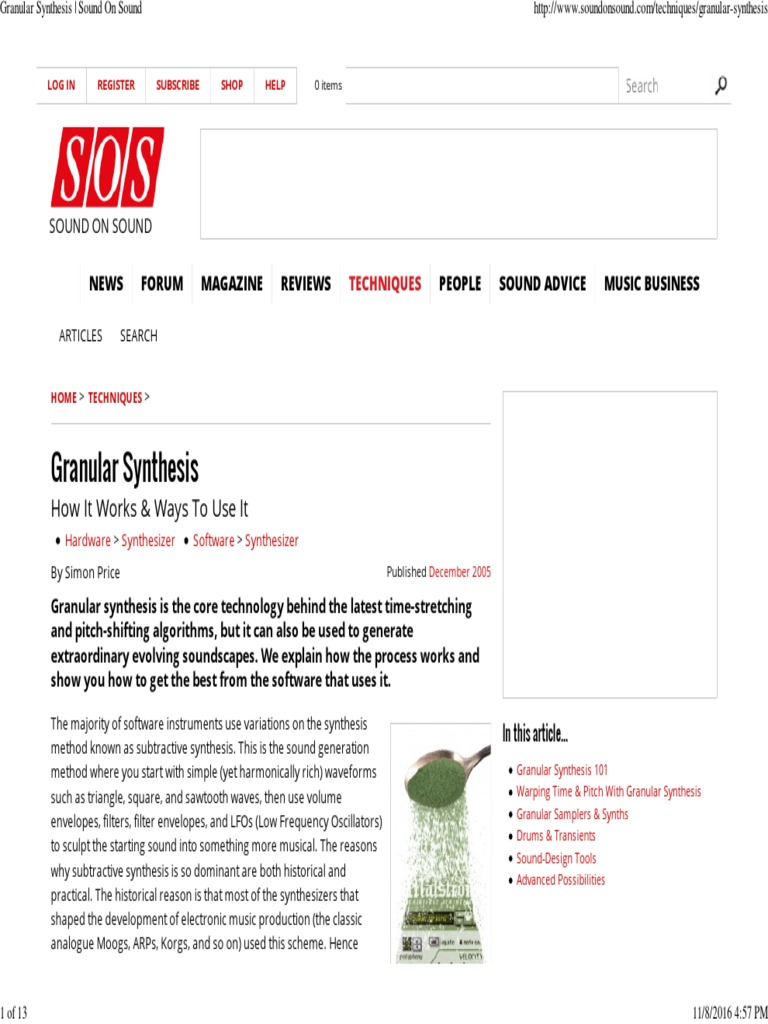 Granular Synthesis | Sound On Sound http://www.soundonsound.com/techniques/granular-synthesis