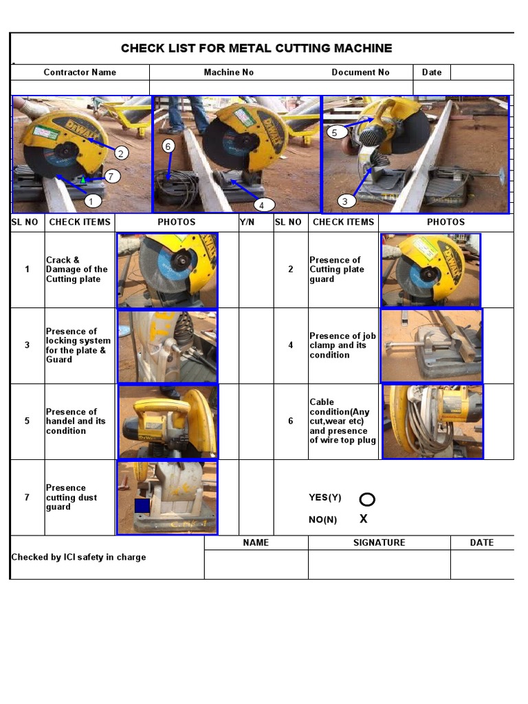 SL NO CHECK ITEMS PHOTOS Y/N SL NO CHECK ITEMS PHOTOS