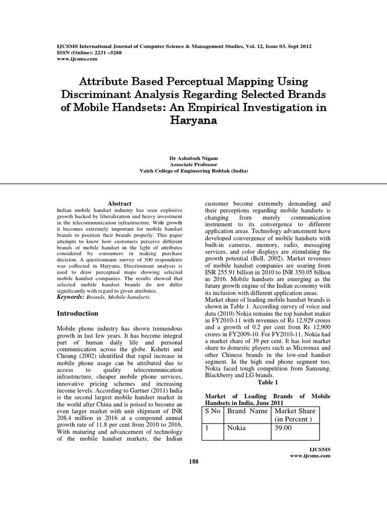 Attribute Based Perceptual mapping of the [23] Electronic Markets, vol. 12, pp. 22-26.