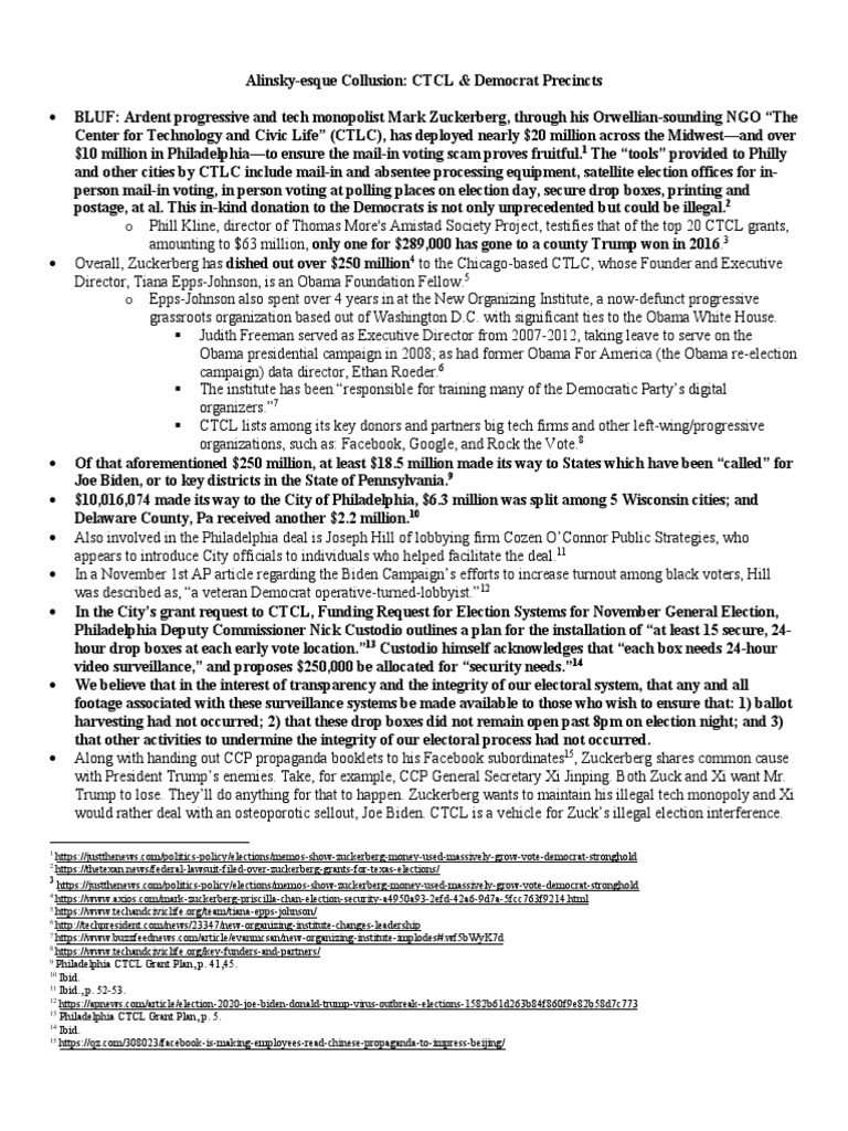BLUF: Ardent progressive and tech monopolist Mark Zuckerberg, through his Orwellian-sounding NGO The