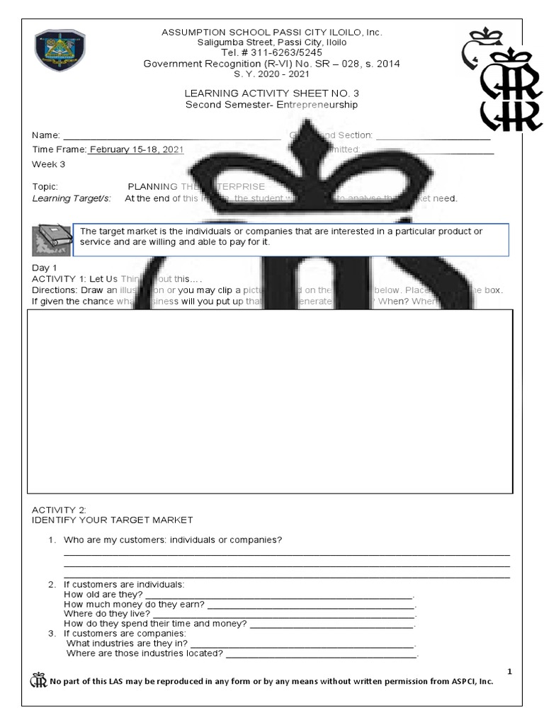 Learning Target/s: At the end of this lesson, the student will be able to analyse the market need.
