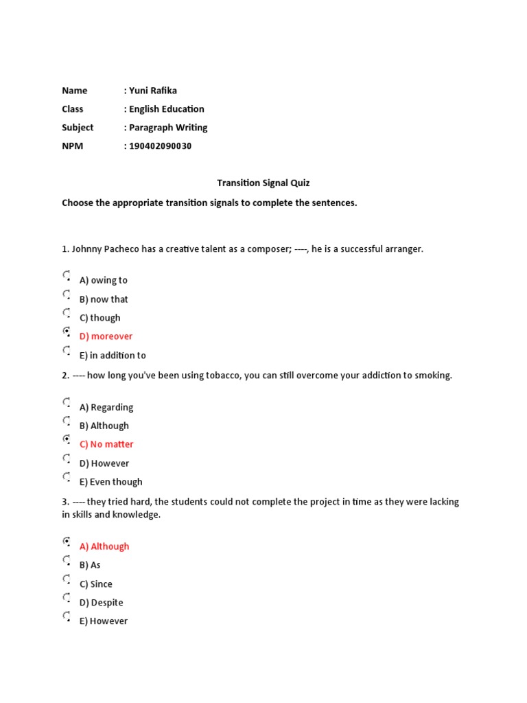 10. Bicycles are the most preferable way of transport in town, ---- cars and buses just cause air