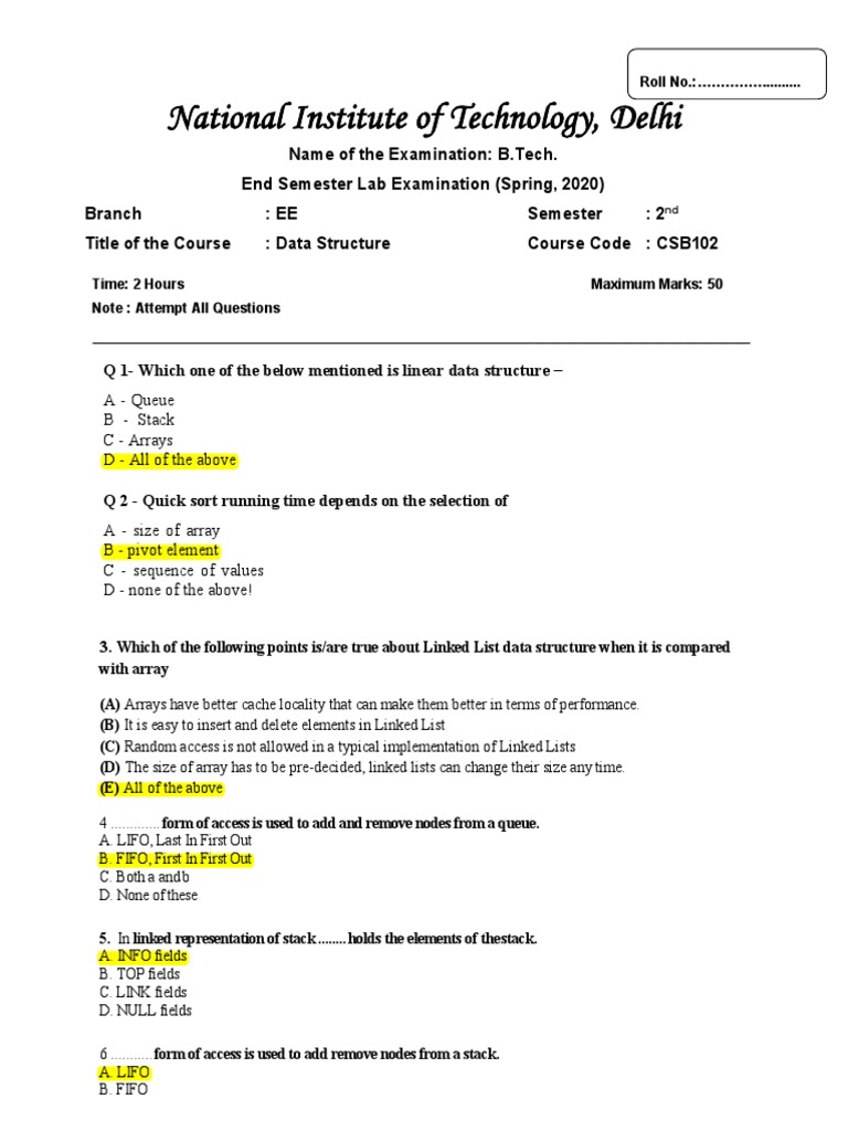 9. In linked representation of stack the null pointer of the last node in the list signals