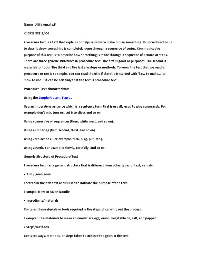 Procedure text is a text that explains or helps us how to make or use something. Its social function is