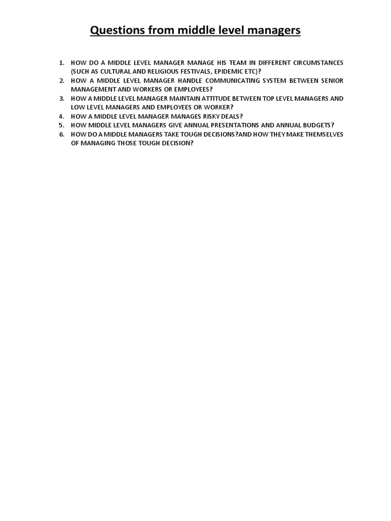 1. HOW DO A MIDDLE LEVEL MANAGER MANAGE HIS TEAM IN DIFFERENT CIRCUMSTANCES