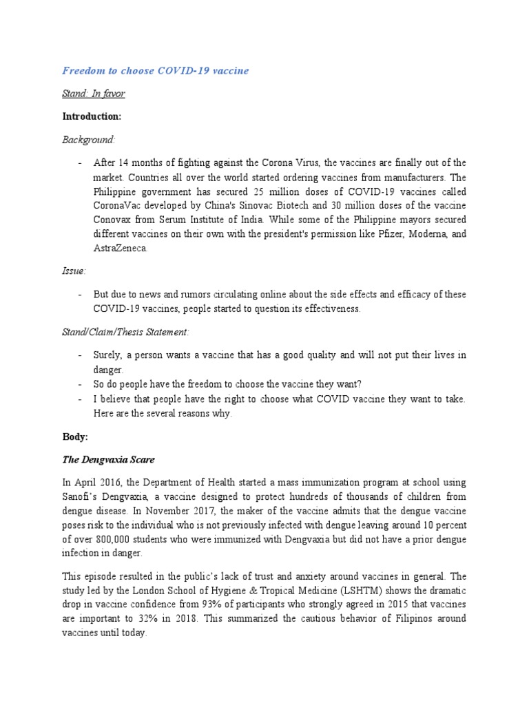 Health (DOH). However, there is a concern everywhere about the specific vaccines that the