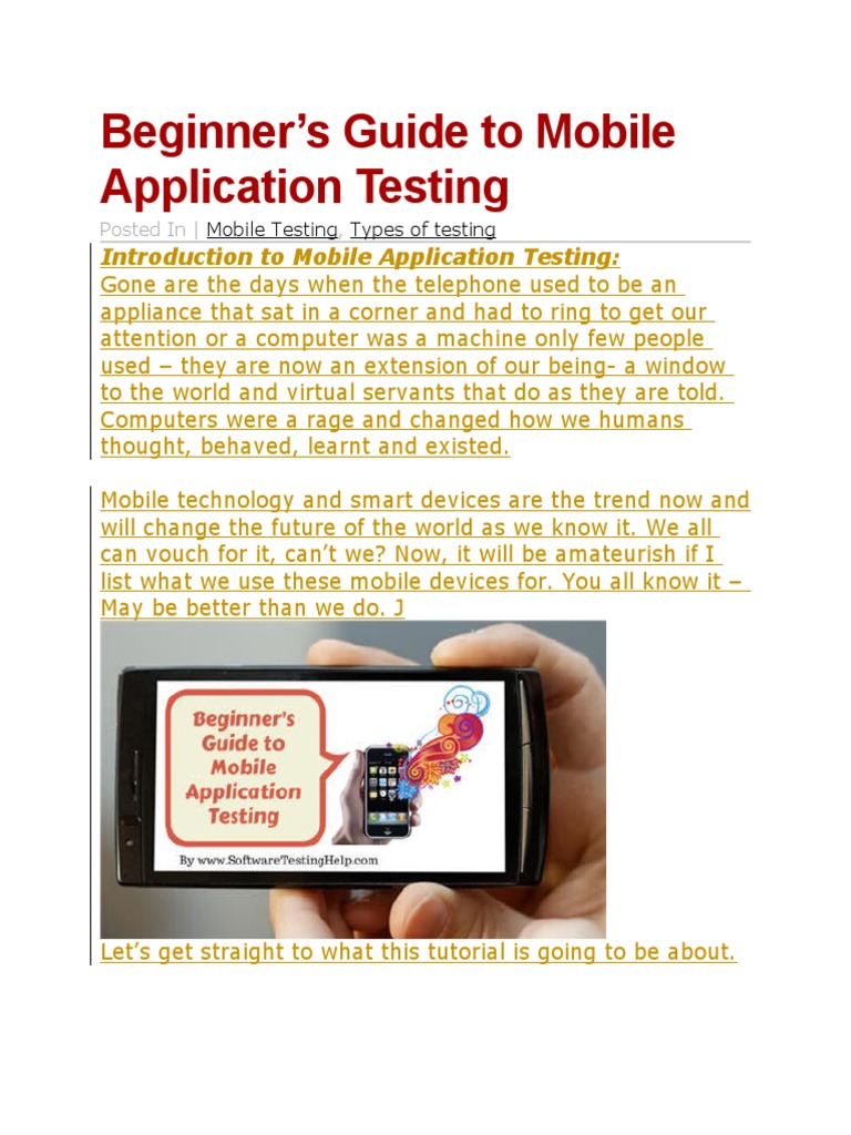 is just looking for info on the various aspects of mobile Testing. am a Test Lead