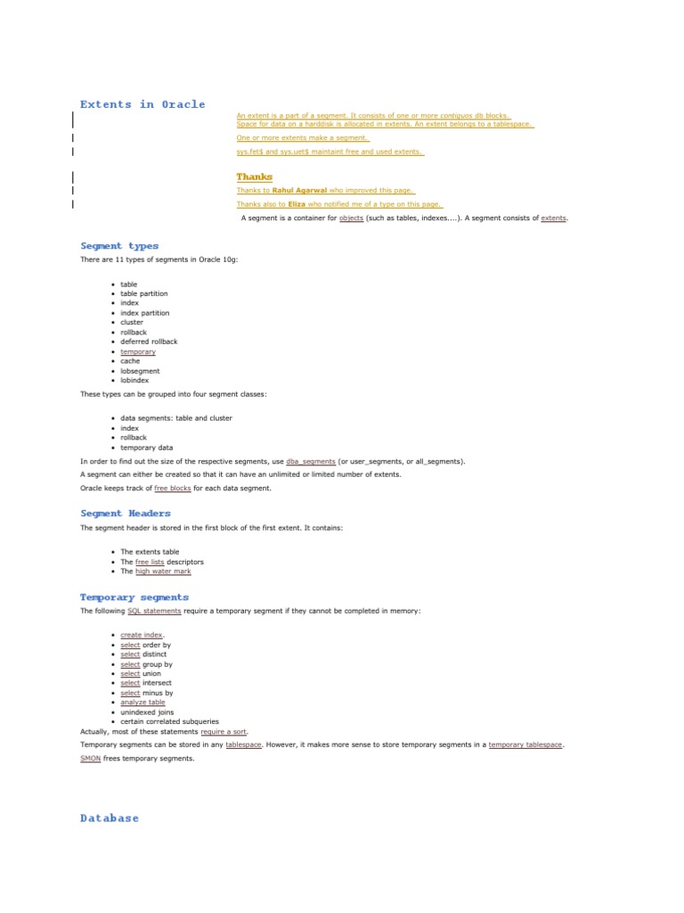 Extents in Oracle