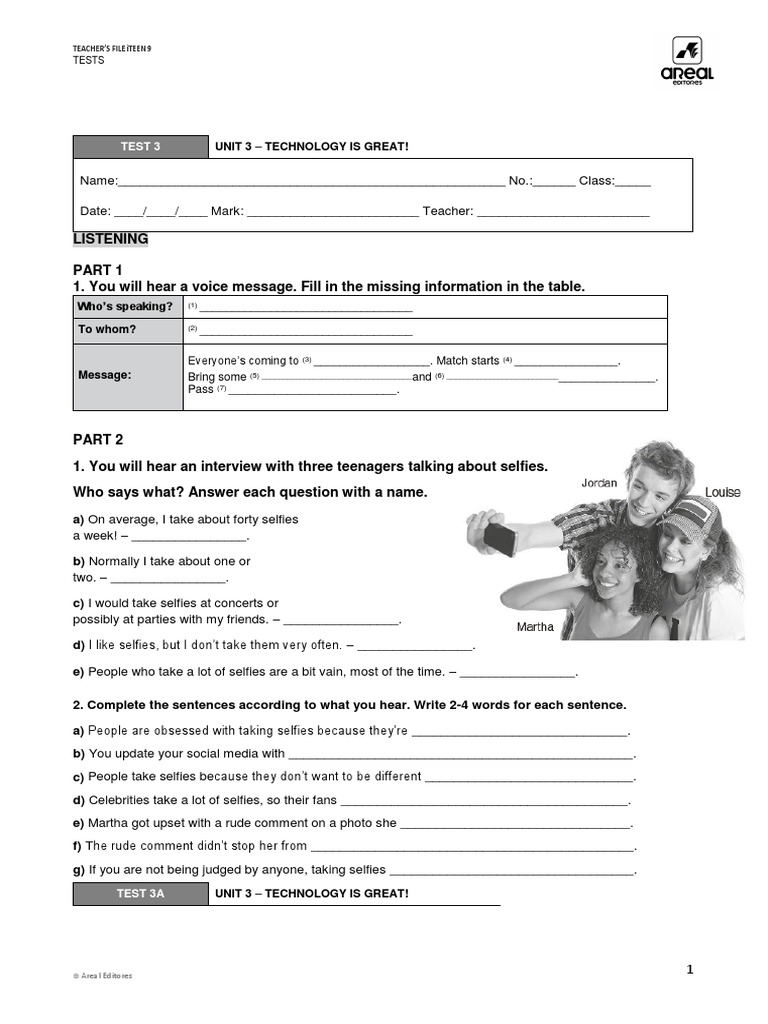 TEST 3B UNIT 3 – TECHNOLOGY IS GREAT!