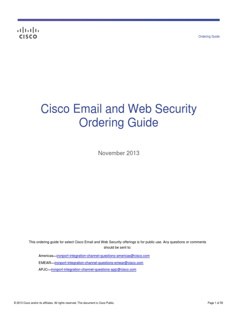 This ordering guide for select Cisco Email and Web Security offerings is for public use. Any questions or comments